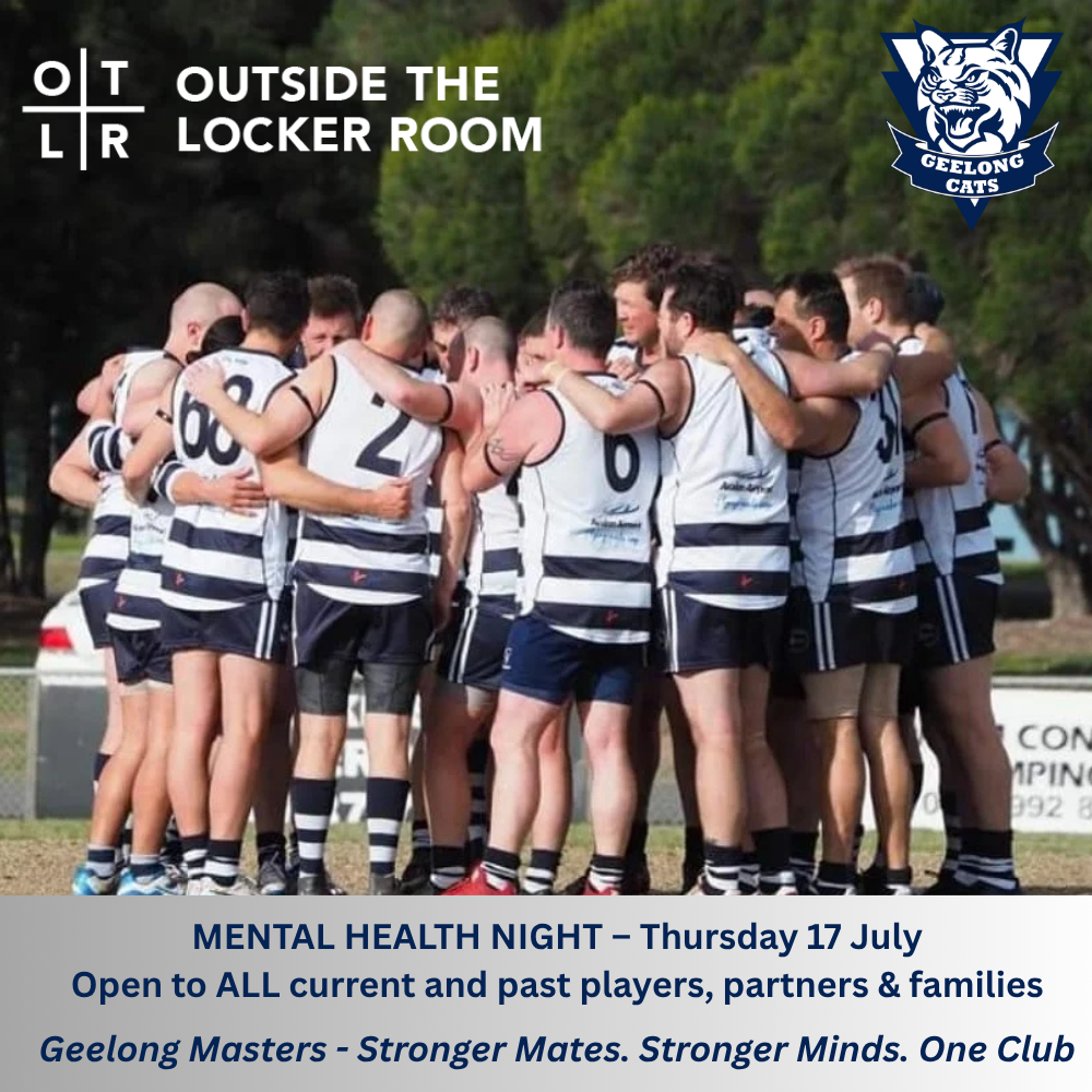 #GeelongAFLMasters #OTLR #MentalHealthMatters #ClubCulture #MensWellbeing #StrongerTogether #aflmasters #geelongcats #geelongcatsfc #outsidethelockerroom